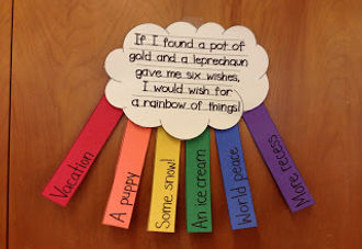 Materials: Rainbow colored paints, paper plates, scissors, Pot cutout